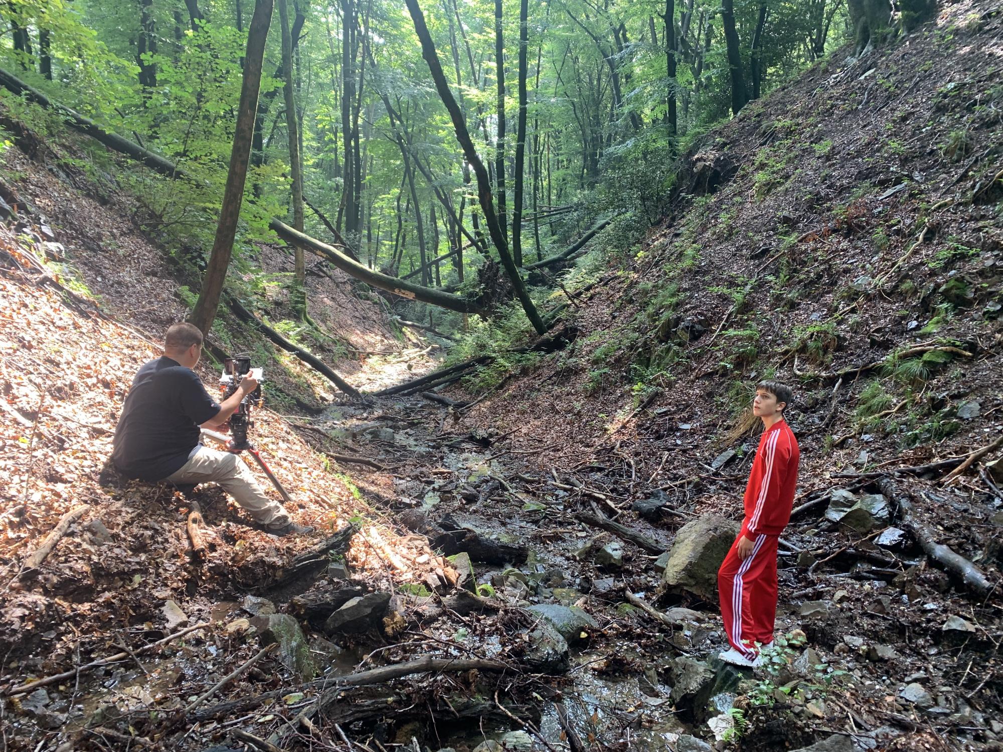 La sequenza di ricostruzioni del “bambino con la tuta rossa”, tratta dal racconto personale di Hasan, un sopravvissuto in fuga da Srebrenica durante la guerra degli anni ’90 in Bosnia, è stata girata in Ticino a Vico Morcote, più precisamente in un bosco all’alpe Vicagna. Ho scelto questo bosco perché le sue atmosfere e i suoi silenzi richiamano quelli che Hasan era costretto ad attraversare per sopravvivere. Non si tratta dello stesso luogo, ma la somiglianza della natura permette di evocare lo stesso senso di smarrimento e protezione.